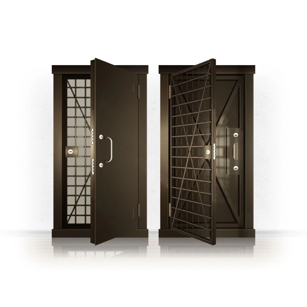 Металлические двери КХО и КХН представляют собой входные блоки, обладающие высоким уровнем взломостойкости и состоят из трех основных элементов: усиленного каркаса, сплошного металлического полотна и решетчатой двери. Дверной блок изготавливается из стального уголка 100*100 мм. Места крепления блока к стене цементируются и закрываются стальными наличниками шириной 40 мм. Крепеж заходит вглубь стены на 80 мм. В конструкции внешней створки монтируются ребра жесткости, для обшивки используется сталь толщиной не менее 3 мм. Внутренняя решетка изготавливается из прутка диаметром 16 мм. Размер ячеек решетки должен составлять не более 15 на 15 см. В точках пересечения прутья надежно приваривают друг к другу. В КХО и КХН необходимо поддерживать определенную температуру и влажность. Для этого внутреннее пространство глухой двери заполняется теплоизоляционным материалом, а по периметру двери приклеивается уплотнитель. Такие двери оборудуются замками с повышенным уровнем взломостойкости. Специализированные двери КХО и КХН в Волгореченске могут быть оснащены сигнализацией, в конструкции могут быть проушины для навесного замка и элементами для опечатывания. Если идет речь о двери в комнату хранения оружия, в створке оборудуется окно для выдачи оружия и спец. средств, которое накрывается стальной дверцей.